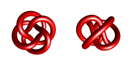 How often the 3D curve twines around the imagined torus is controlled by two integers values p and q. The parameter p can be selected with the winding up/down slot and q with the winding around slot. Some (p-q)-torus knots have special names, e.g. a (2,3)-torus knot is called trefoil knot and a (2,5)-torus knot is called cinquefoil knot.